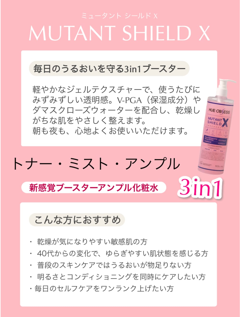 【高濃度アンプル化粧水】ミュータントシールドX 高保湿エッセンス 500ml/100ml 肌バリアケア&エイジングサポート
