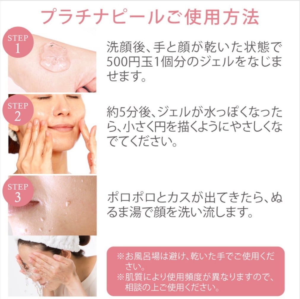 「プラチナピール」は、ヒアルロン酸などの美容成分を配合したピーリングジェルです。