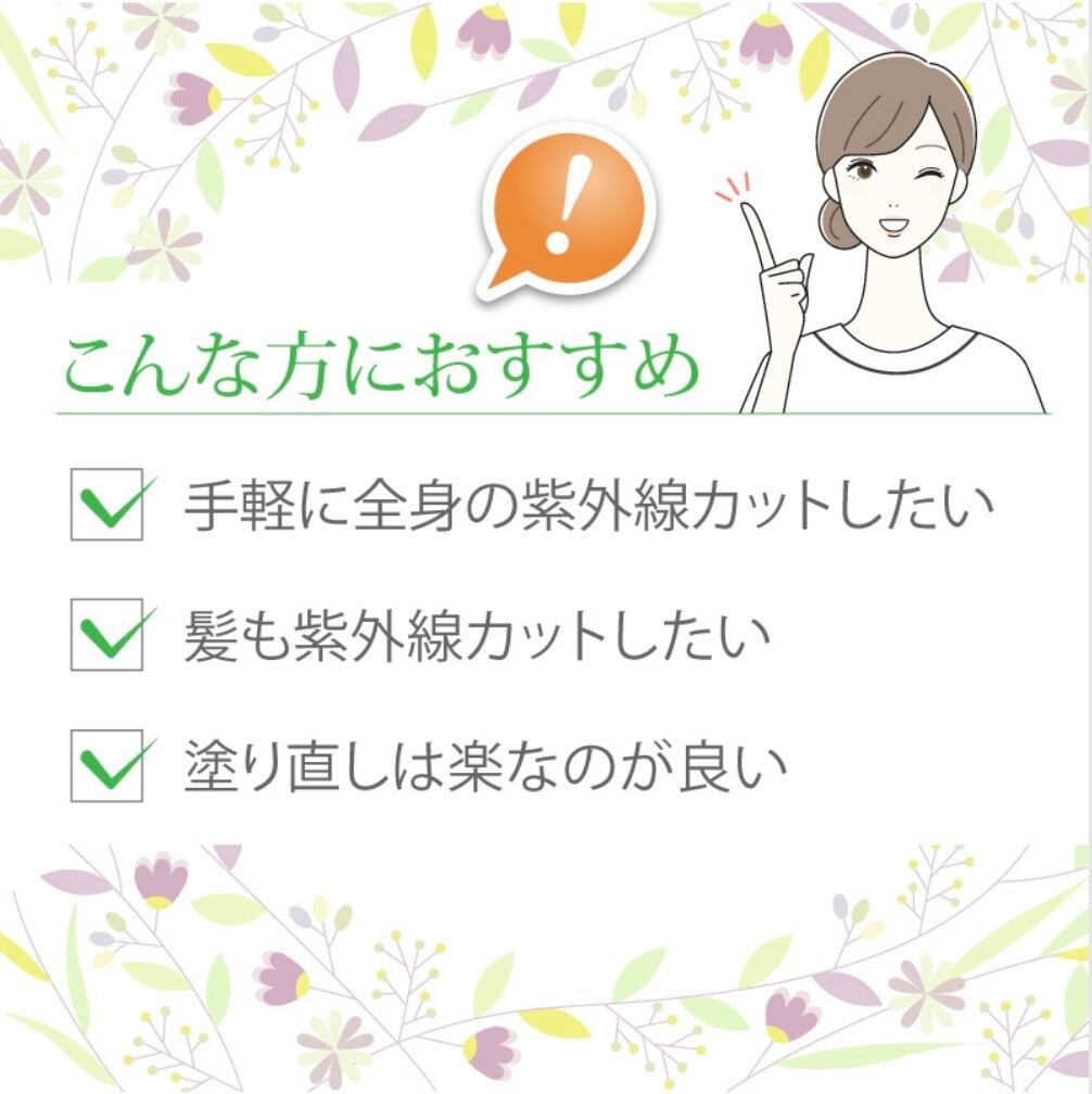 腕や足、背中、髪の毛など広い部位にシュッと吹きかけることができます。