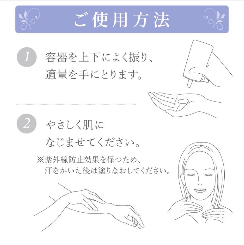 容器を上下によく振り、適量を手に取りお肌になじませます。